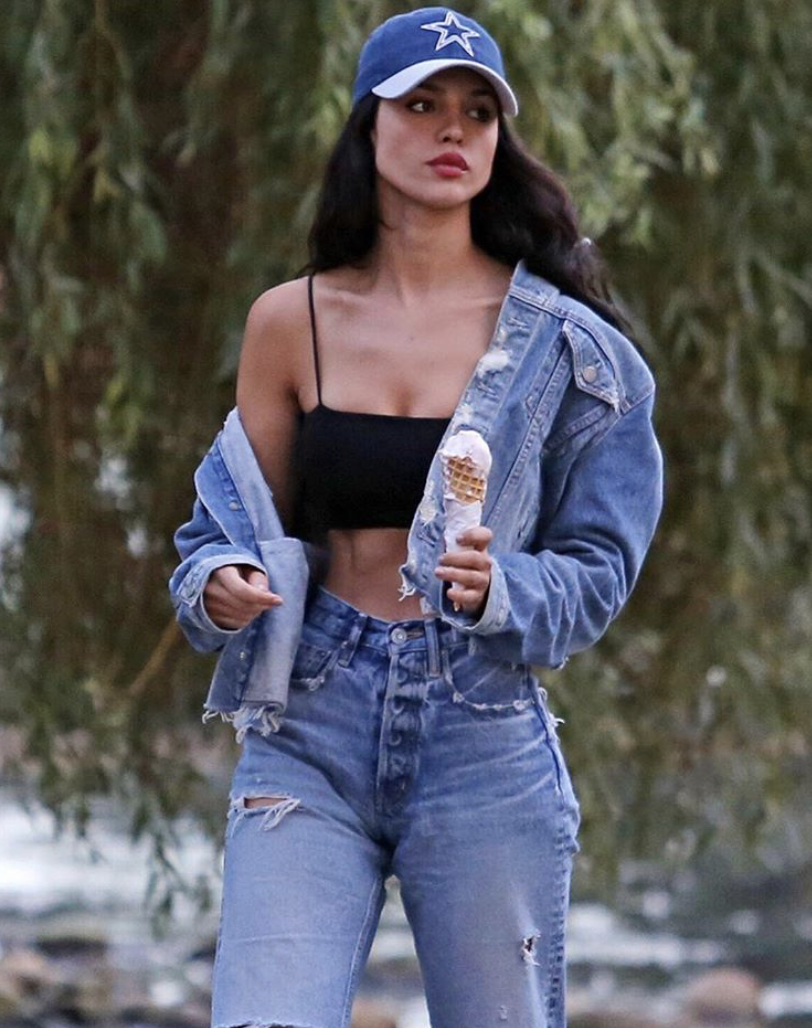 例如这套牛仔连体裤,也太杀了!eiza独特的健康性感气质,恰恰贴合了牛仔衣物中所蕴含的复杂而蓬勃的生命力美。