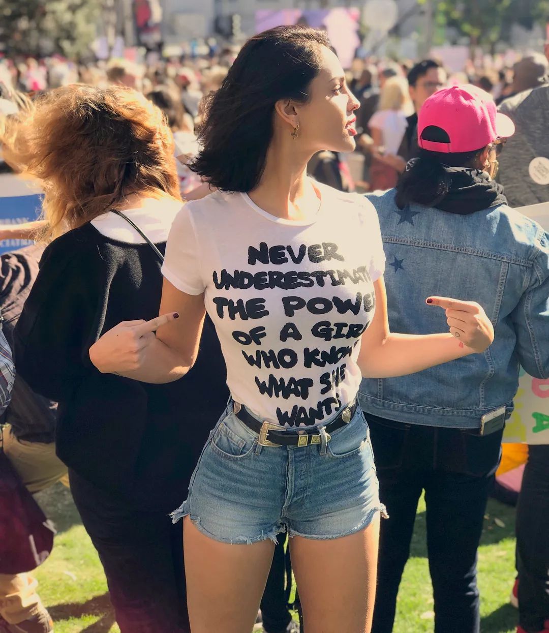跟电影里的造型完全相反,这位姐姐私服遵守的法则是简约至上。牛仔裤、t恤、背心这些常见的基础单品都是她的出街利器。