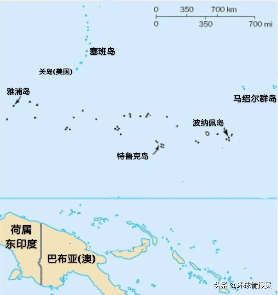 ▲美日争夺的雅浦岛,以及日本重点进行军事建设的特鲁克岛