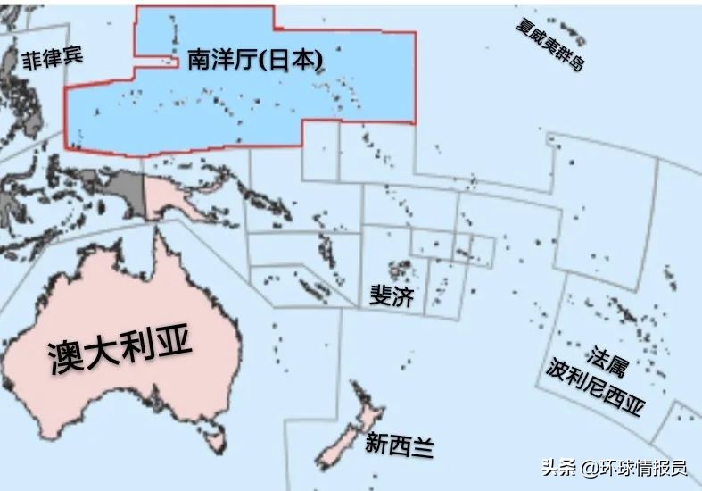 ▲日本南洋厅的统治范围及地理位置(深蓝色)