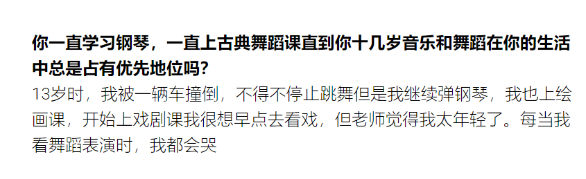 其实,在13岁经历车祸的那年,欧嘉·柯瑞兰寇自己都觉得人生很沮丧,不能够参加表演的她总是偷偷地哭。