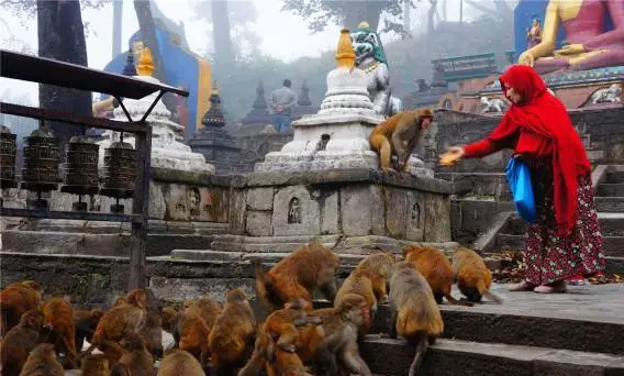 猴庙位于泰米尔西面大约两公里处,由于遍地是猴子(rhesus monkey),所以也被俗称为猴庙。山顶有一处尼泊尔最大的佛塔之一,是俯瞰加德满全景的好地方。