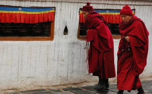 博达哈大佛塔是世界上最大的圆佛塔。它的四周环绕着的是一圈圈虔诚地围绕着佛塔转圈的,转着转经筒的信徒们,从早到晚,绵延不绝。