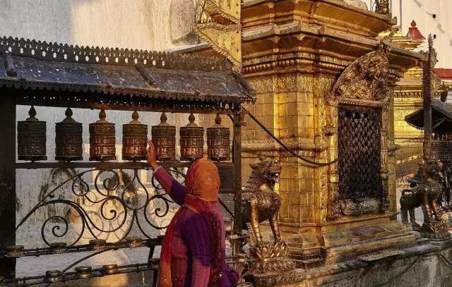 目的地的气质决定了整个旅行的基调,尼泊尔充满热情的南亚风格与虔诚的佛教元素。走在千年古迹中的你身穿卫衣球鞋、手拎lv包包,倒不如一套街边买的民族风大褂更融情融景。