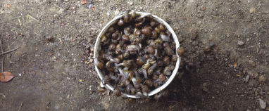 而是把蜗牛一颗颗摘下来,放到桶里,又任它们爬走……
