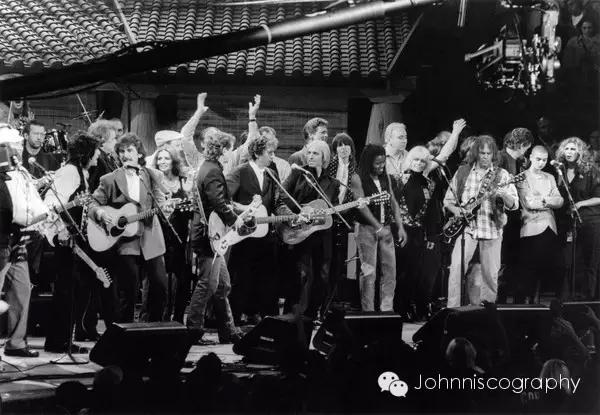其中最著名的就是1992年,群星纪念鲍勃迪伦出道30周年的演唱会the 30th anniversary concert celebration的大合唱。这场演唱会汇聚了众多巨星,一同翻唱迪伦的作品向他致敬。在六大天王(roger mcguinn,tom petty,neil young,eric clapton,bob dylan,george harrison)合唱完my back pages后,所有音乐人走上台来,众星捧月地合唱了这首knockin' on heaven's door。期间有趣的是迪伦本人貌似不在演出状态,除了my back pages唱得最难听,后来出版唱片是重新录制了的,在大合唱中多次走神,忘了去唱。还要滚石乐队的ronnie wood给他打手势--“该去唱了!”但是这个版本仍然是最为经典的一版。这首歌后,大家散场,留下迪伦老头自己,在大家向他致敬后,演唱了song to woody向自己的偶像woody guthrie致敬,然后又独唱了一首“东北大妞”(girl from the north country),演唱会落幕。