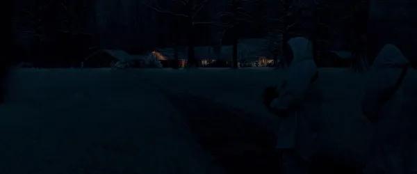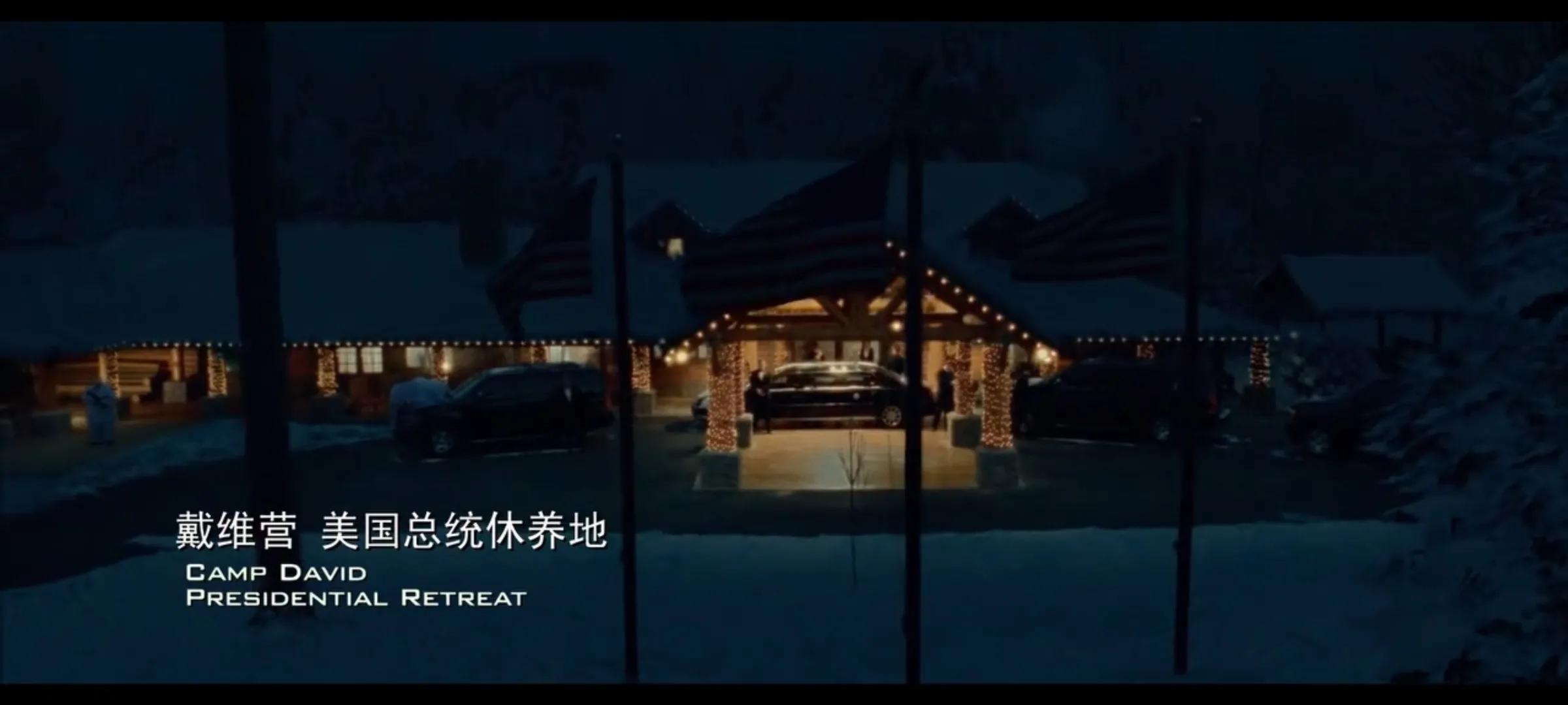 随着镜头的拉伸,我们的视角掠过凯托克廷山公园白雪皑皑茂密的森林,直到在三面寒风凛冽下猎猎作响的美国国旗下的戴维营(camp david)下,结束了这个外景镜头。
