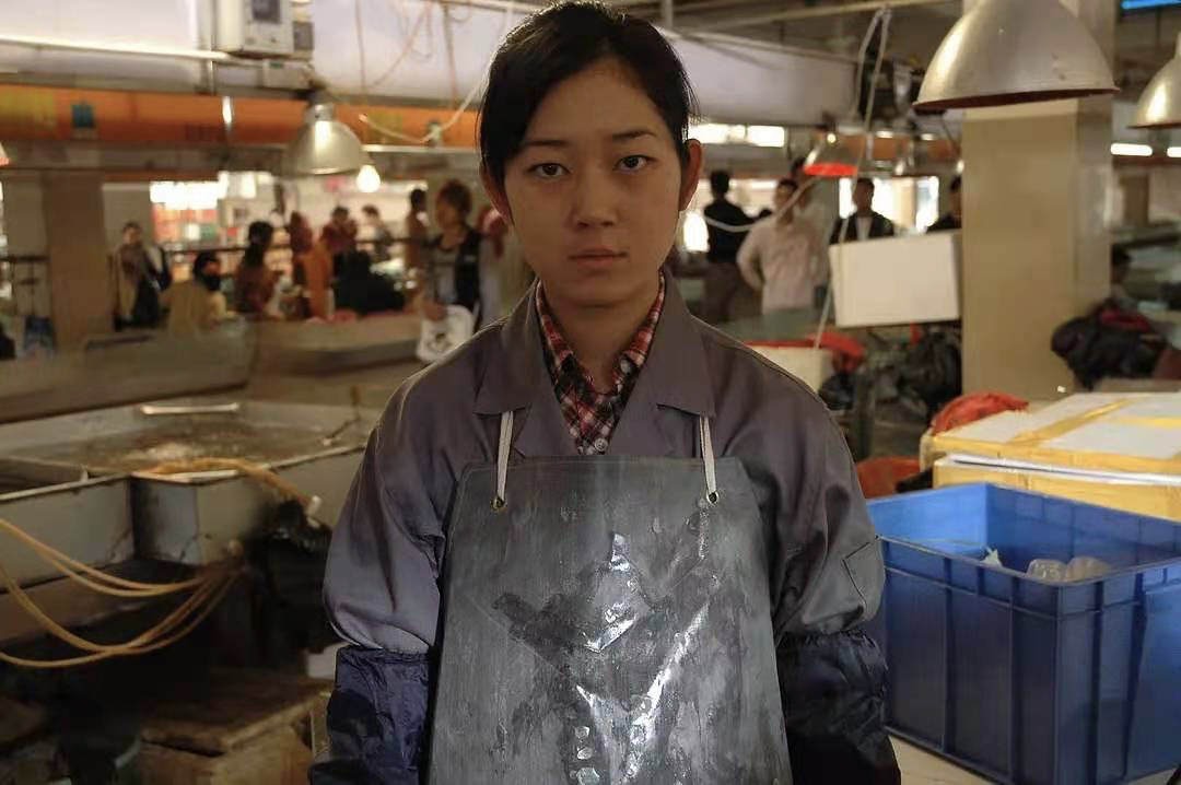 为了讨生活,两个女人就在菜市场上卖鱼了。