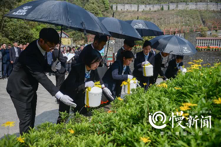 “骨灰只是后人的一个念想,没必要占太多土地和空间。父亲生前交代过以这样的方式下葬。”前来参加安葬仪式的张阿姨告诉上游新闻·重庆晚报慢新闻记者,她也希望自己百年之后回归自然,有树和小草陪伴。“一个碑一个碑这样一排排看过去,有些冰冷,后人前来祭扫,可能心里也不会很舒服。如果能花葬,和大自然融在一起,陵园变成公园,没有烟熏火燎,安安静静。”