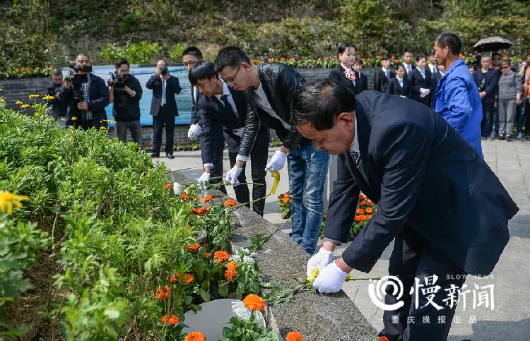 逝者家属送上鲜花
