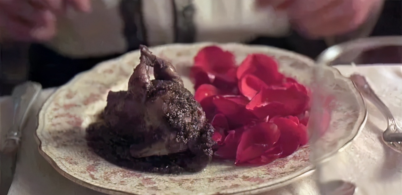蒂娜用佩德罗送的玫瑰,做了鹌鹑玫瑰,蒂娜的血滴在菜中,思念也随之溶进了玫瑰花汁中,情欲溶进了鲜嫩的鹌鹑肉里,二姐吃到这道菜,毅然决然地冲出母亲设下的牢笼,拥抱新的生活。