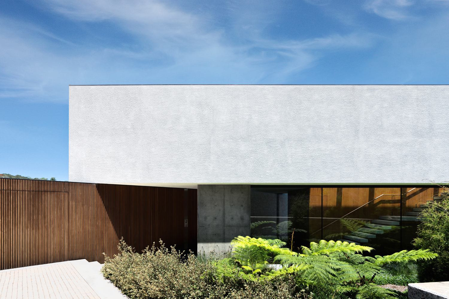 该场地的东、北和西都被邻居所包围,但在南边,可以欣赏到柯林斯海滩周围的海湾和远处海港的令人难以置信的一览无余的景色。在将南部和周围丛林的景色框起来的同时,这所房子还必须确保邻居的隐私,同时捕捉到被其他房子、陡峭的山丘和现有的大松树阻挡的北方阳光。