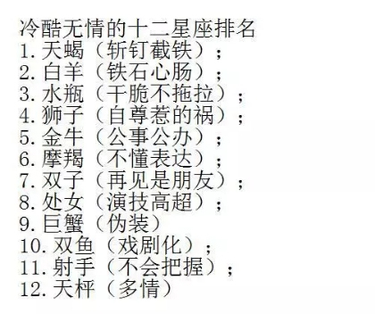 冷酷无情的十二星座排名