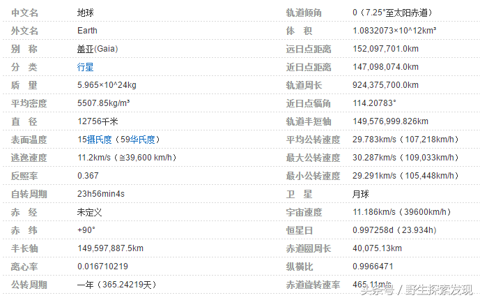 地球的相关参数:
