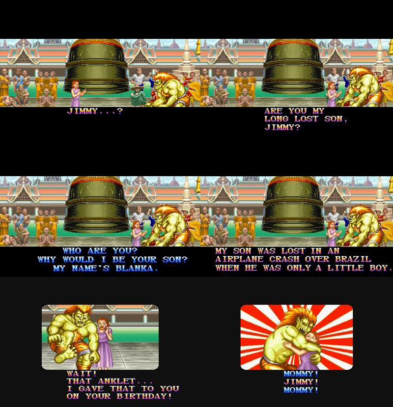 因此在改版游戏出来之前,我们都没有见过布兰卡、本田和春丽的通关画面。