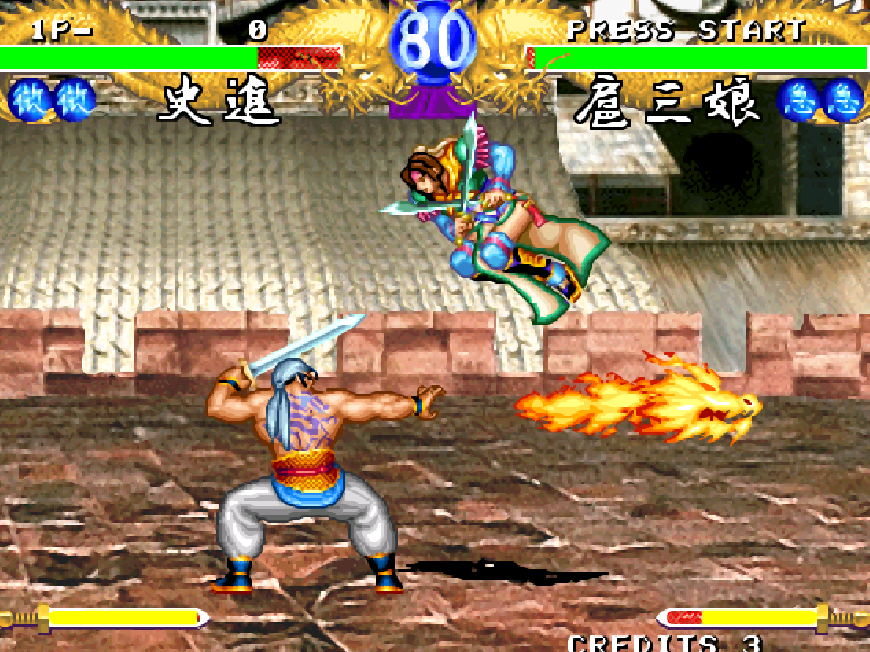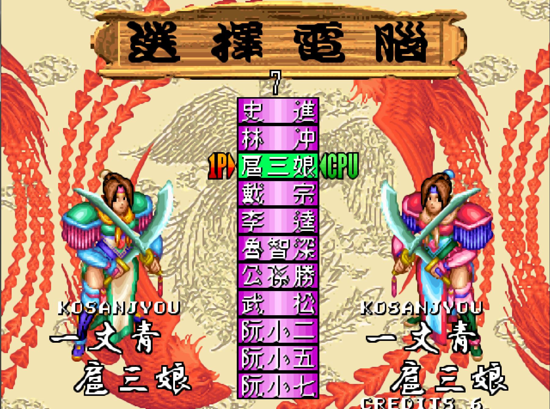 比较奇怪的是,游戏厅时期选用史进,不需要什么技术和技巧,只需要不停转摇杆+按键就能通关。但是在模拟器上面这么玩就会死得很快。