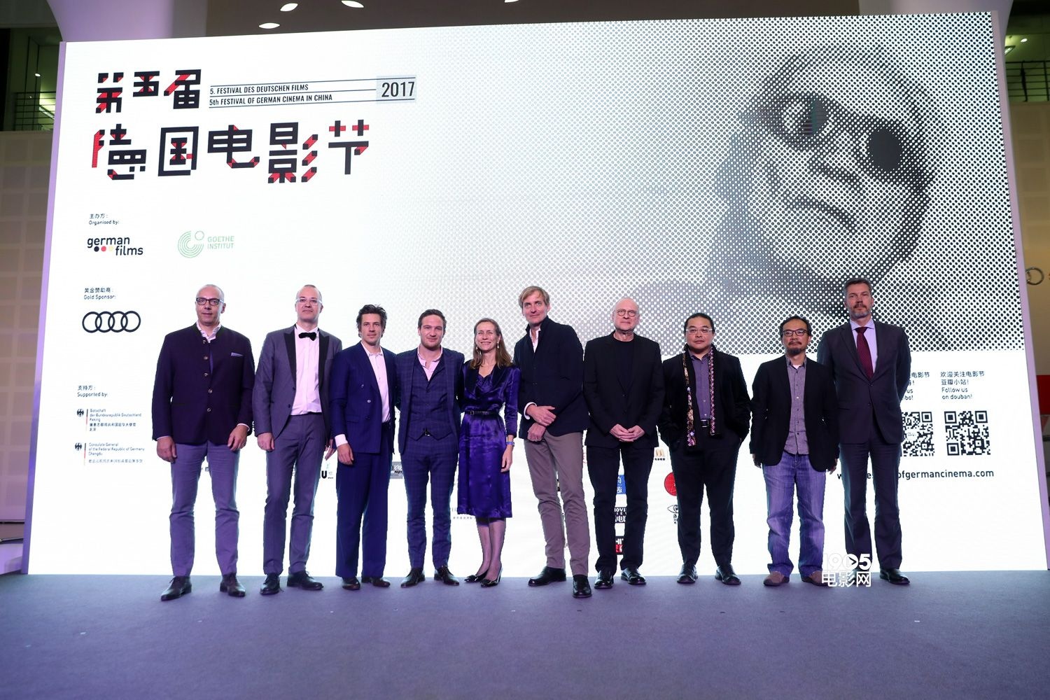 1905电影网讯11月10日,第五届德国电影节在北京开幕。德国驻华使馆文化参赞郝志强、德国电影协会总经理玛丽埃特·里森贝克、北京德国文化中心·歌德学院(中国)院长柯理博士、赞助方奥迪中国企业传播总监魏明祥博士和来自中德两国的电影人——电影节推广大使、导演杨超、刘健、《光芒渐逝的年代》导演马蒂·吉斯切内克、《玛利亚》导演迈克尔·科赫、《审判》导演拉斯·克劳梅、《我单纯的兄弟》主演弗雷德里克·劳共同出席了当天的开幕式活动。