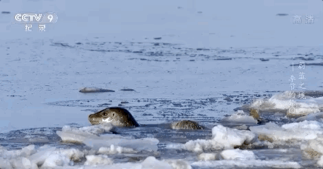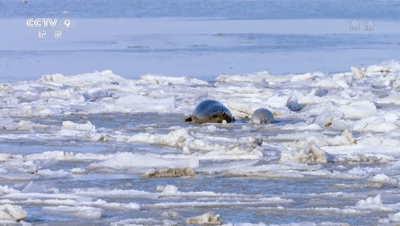 冬天的渤海辽东湾,海面冰封了起来,这里是斑海豹在全球最南端的繁殖地。