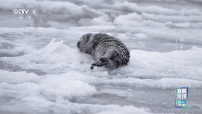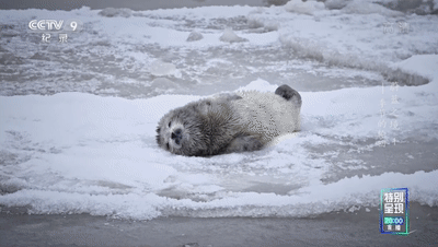 从渤海湾冬季冰层上,刚出生3天的呆萌可爱的小斑海豹: