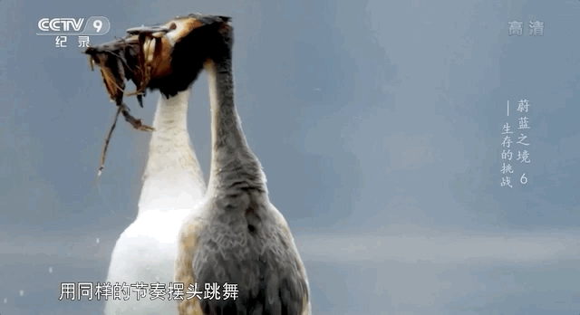 在天津大港湿地,一对凤头?[pì]?[tī],正在进行一场高难度的求偶仪式: