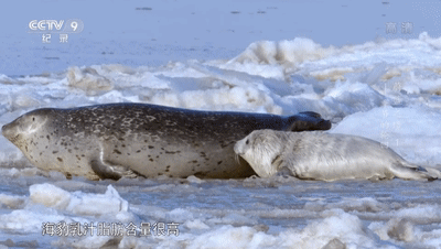 一只刚出生3天的斑海豹,还不会爬和游泳。如果没有斑海豹妈妈的照顾,小斑海豹将难以存活: