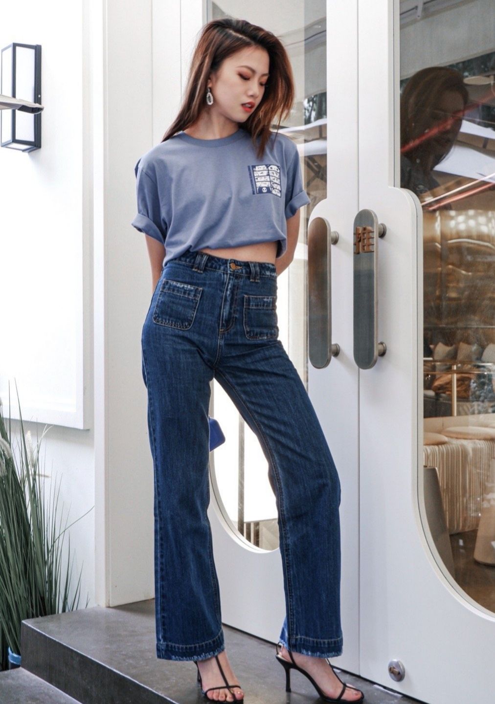 寻常的t恤衫穿法大家都已经穿腻了,那么不妨试试不一样的个性穿法,将t恤衫一侧衣角卷起一截,搭配高腰的裤子,这样不仅可以大方展现出曼妙的小蛮腰,还可以修饰身材避免出现走光的尴尬情况,让你帅的与众不同。