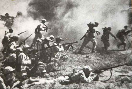梁兴初端起了水杯,呷了一口,大声说道:"同志们,我的意见,把各师的小家底都交了,把'黄白黑'换成'红白黑',那就是——鲜红的战旗,雪亮的刺刀,坚硬的钢铁。在我们这些人手里,发扬老红军部队的光荣传统,杀出威风来,打出个一流部队来。"