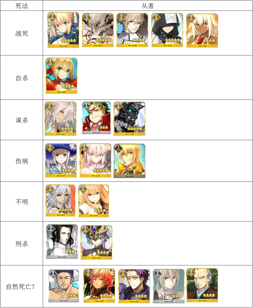 这里的从者秋田君都没找到确切的死法,应该都是自然死亡。