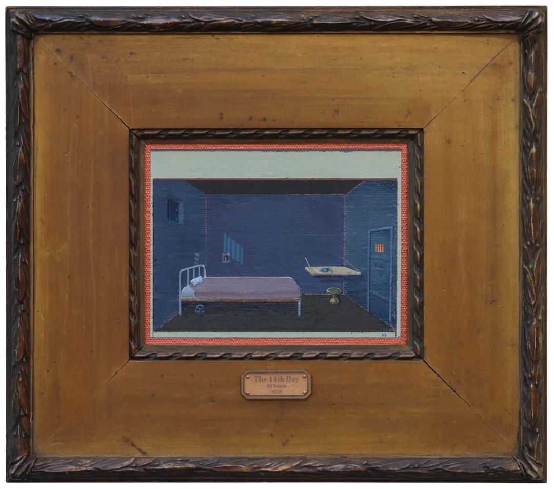 从卧室一点一点地变换,他还画了一张《第十四天》。“就是一个监狱。经典单人监狱,其实是一个更极简的卧室。”