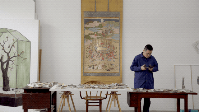 虽然他对自己的传统绘画的能力充满自信,但是有一天他突然意识到:“语境变了!我毕竟不再是一个古人了,平时也不喜欢那些穿着汉服,戴着念珠盘着核桃的姿态。真正理解传统,是需要跳脱出来看传统。”毕业后,他再没画过一幅“国画”,转头逆行,从头开始自我摸索着做当代艺术。