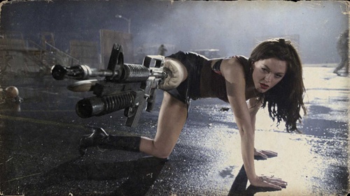 《刑房》,由《死亡证据》(death proof)和《恐怖星球》(planet terror)两个独立的故事组成,分别由两位导演执导,处处流窜着b级电影惯用的手段--超火辣的大美女,公路追逐,杀戮与爆炸,再加上僵尸横行。