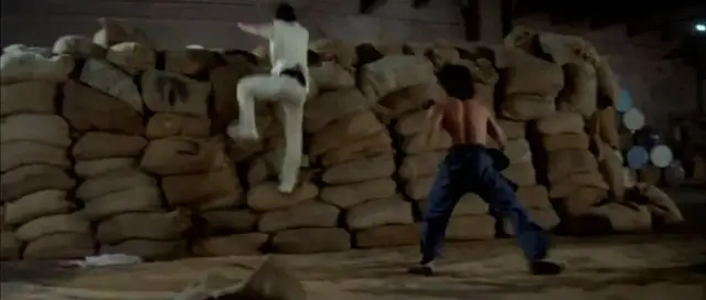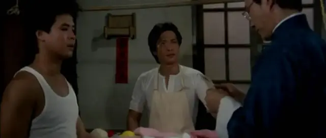双方力量,好人开始占据上风。但好景不超过几秒钟。因为,一直埋伏在围观群众里的快刀项方出手了。结果,他是坏人。一出手,就重伤少爷,还ko了浪子。快刀项方的饰演者是程天赐,张彻第五代徒弟里他比较喜欢的一个。不过,咦?他怎么也穿了白衣,看来也药丸。