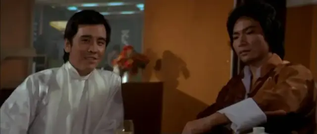 高手对决,最怕分神。富翁妹妹一喊叫,富翁就出神,然后富翁果不其然就挂掉了。可怜的富翁,承担了保护高先生的任务,结果,高先生还没到,自己就先挂了。富翁的饰演者是梁家仁,片中也算拗足了身形,拍足了造型,得到了张彻的厚爱,死得其所。