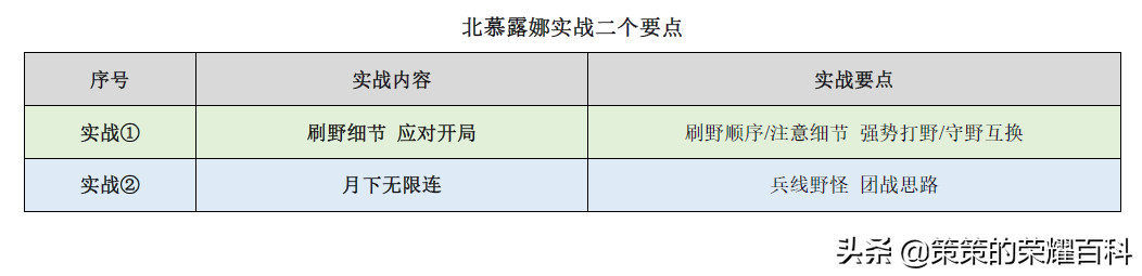 由于露娜非常需要蓝,北慕通常会选择蓝开,刷野顺序通常为1→6,若中路1min河道之灵刷新位置恰好在露娜打野下一步路线上,可根据比赛实际情况配合己方中辅优先争夺。