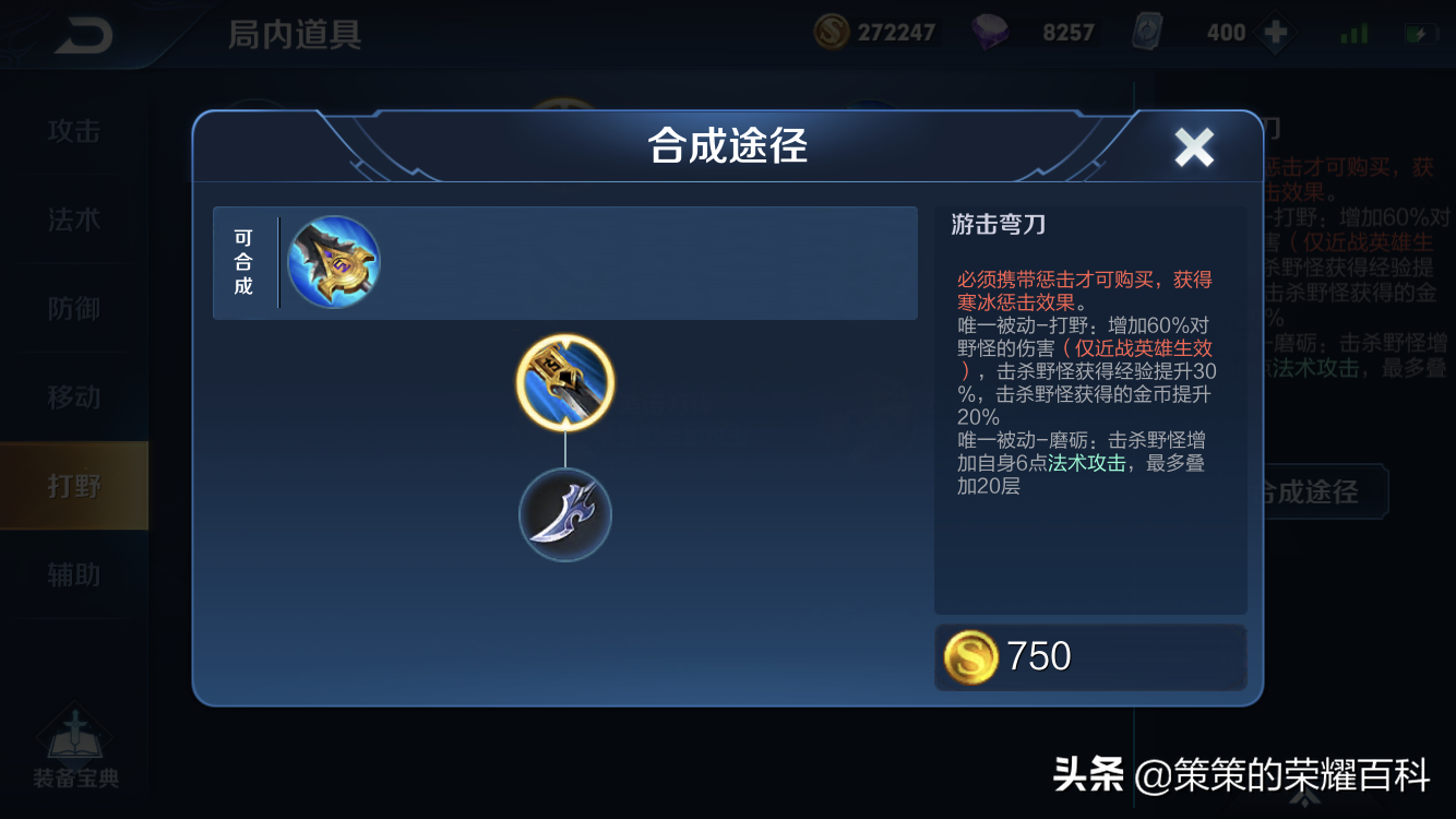 出装顺序为,打野刀→进化水晶→抵抗靴,再选择二级蓝刀。