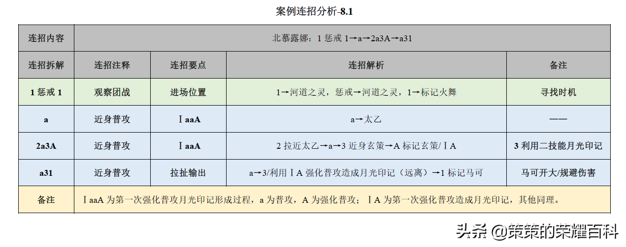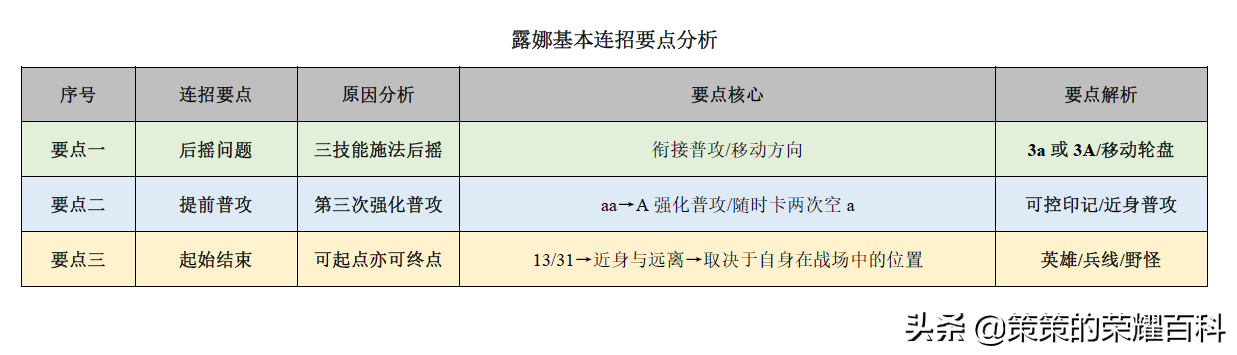 露娜基本连招并不复杂,关键在于技能与普攻合理衔接并将月光印记最优化处理,策策主要从后摇问题、提前普攻与起始结束进行分析,具体如下: