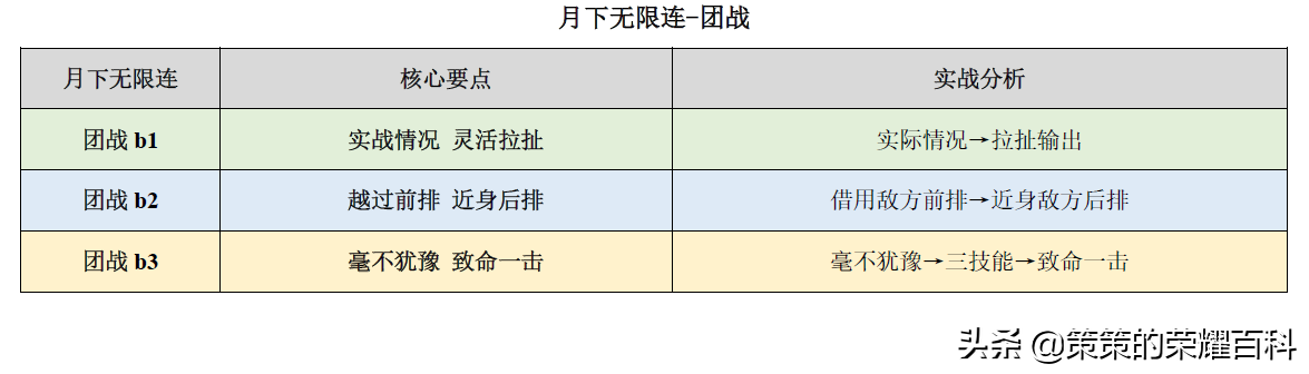 露娜在团战中需要紧盯敌方c位,通常来说,团战阵型为前排在前抗伤提供控制,而双c则会站在后排寻找输出时机。