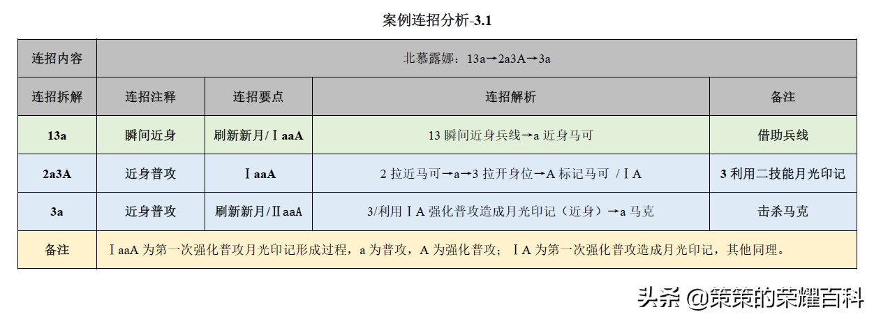 露娜在释放三技能之后,可以衔接普攻取消后摇,所以,露娜通常连招3a或3a为一段,a为强化普攻。