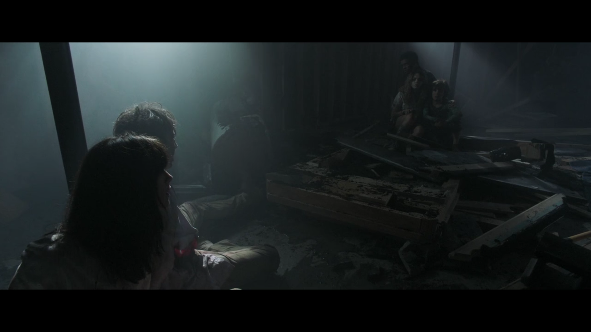 姐姐和她男朋友合力把老爸弄晕,并和弟弟躲到了地下室。这时妈妈回来了,很有趣的是妈妈回家前是想救孩子的,可是回到家见到丈夫后,就和丈夫一起想杀了孩子。