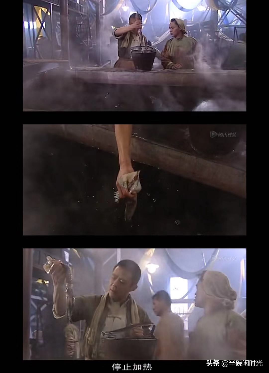 剧中有一个细节,六子染布需要控制水温,在尝试温度计不成之后,他又自学了一招——用鱿鱼来测试水温。