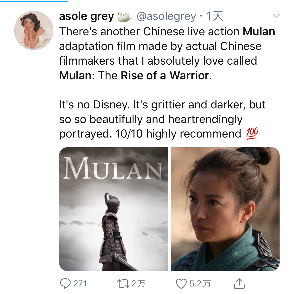 有一位外网友发布了赵薇版《花木兰》剧照并大力称赞,获得了5万多点赞2万转发,而他转发了这一版电影的来源,也受到了推崇。