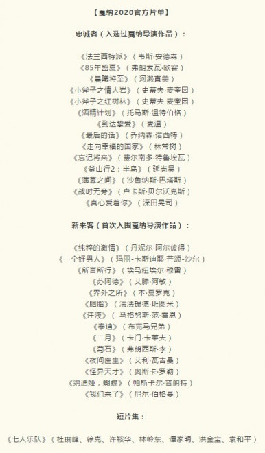 56部影片入围2020官方单元