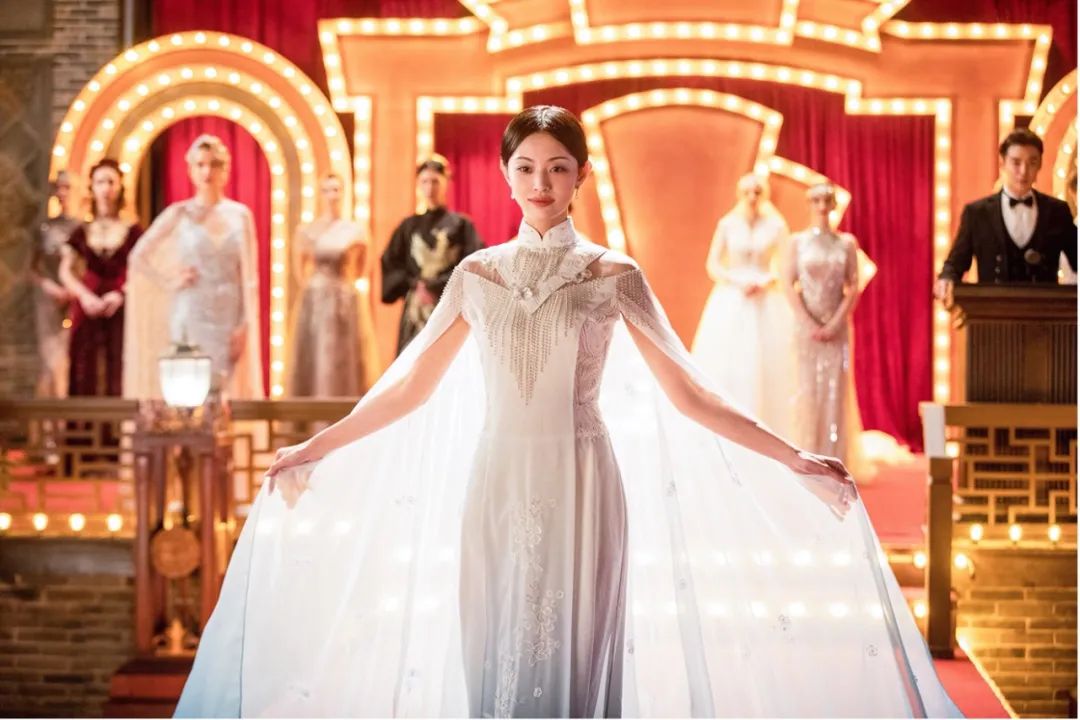 最惊艳的是她着一身红色嫁衣,辅以金丝镶边的嫁衣在她身上展现出了一种馥郁和清冷交织的美,这样的气质也映衬了她被逼和大帅成婚时“不甘”的心情。
