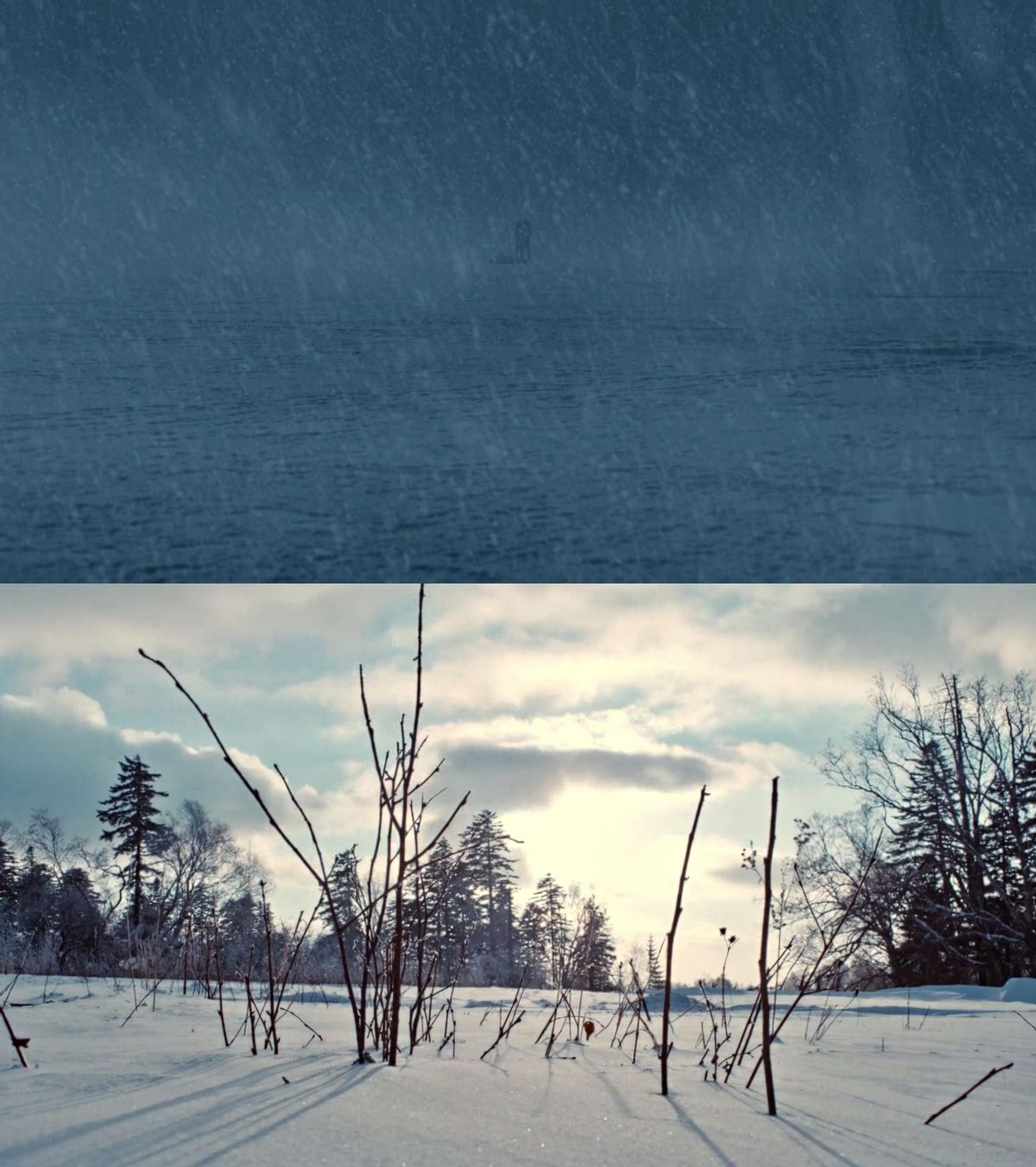 《双探》的背景设置在双塔,一个被白雪铺天盖地围裹住的边界之地。独特的地域景观所蕴藉的冰冷、粗莽,与纪实性的手持摄影、残旧破落的工业场景,共同构成了剧集浓郁的黑色影调,并且与两条早已揭晓的犯罪线索相融。