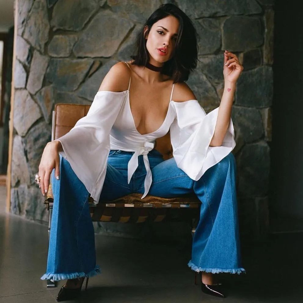 最经典的纯白衬衫与条纹衬衫,eiza亦能演绎出慵懒性感与干净利落的混合气质。