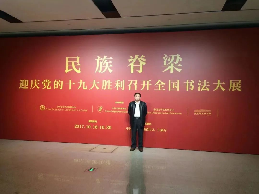 其书法作品多次参加各类书法大赛,书法作品《厚德载物》《海纳百川》已入编《当代书画家真迹博览大典》《世界名人录》等十几部典籍。作品《赤壁怀古》,曾获加拿大国际教科文组织的《世界华人世间艺术大赛金奖》,作品《兰亭序》获中国“兰亭杯”书法大赛金奖,作品《三国演义开篇词》、《沁园春雪》被载入《中国国际书法艺术名家大典》一书,被中国国宾礼评审委员会评为“国宾礼特供艺术家”,书法作品《唐诗三百首》《宋词三百首》被中国国家博物馆收藏,作品《毛泽东诗词长卷》、《毛泽东沁园春·雪》被人民大会堂管理局收藏。