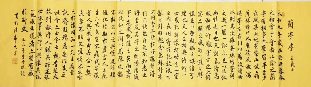 “书法是用心写出来的”,他强调:“书法,即法书。贵于【拙】【朴】【古】,难于【俊】【淳】【正】”。景观其作,古朴典雅,浑厚华荣,雄壮隽永,碑味十足,当感恩于培植他成长的黄河文化,那种拙朴之气,古高之境,当归功于他勤学于本分的清正淳厚。