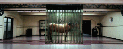 紧接着,这匹马被从天而降的玻璃分成数段。
