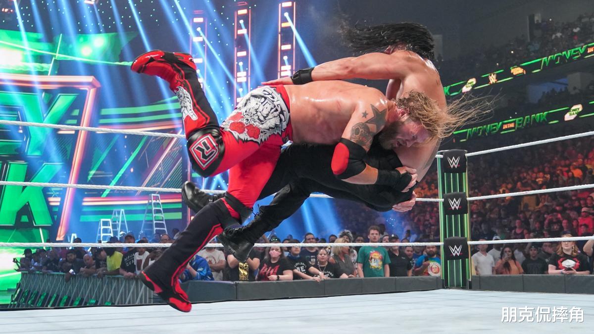 今年合约阶梯ppv压轴的主战赛,是罗曼与艾吉之间纯粹的一对一“飞冲肩之战”。说出来你可能不信,艾吉在台上台下陆续用上了好几个飞冲肩都没能夺得胜利,罗曼却只使出一个飞冲肩便成功保住了腰带