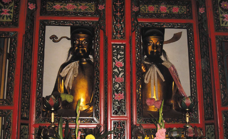 据考证,唐代以前寺院中所立的地藏佛像都是单身像,自金乔觉之后,地藏佛像两旁才开始有闵公和道明像相侍,这背后隐藏着一个"袈裟借地"的故事。